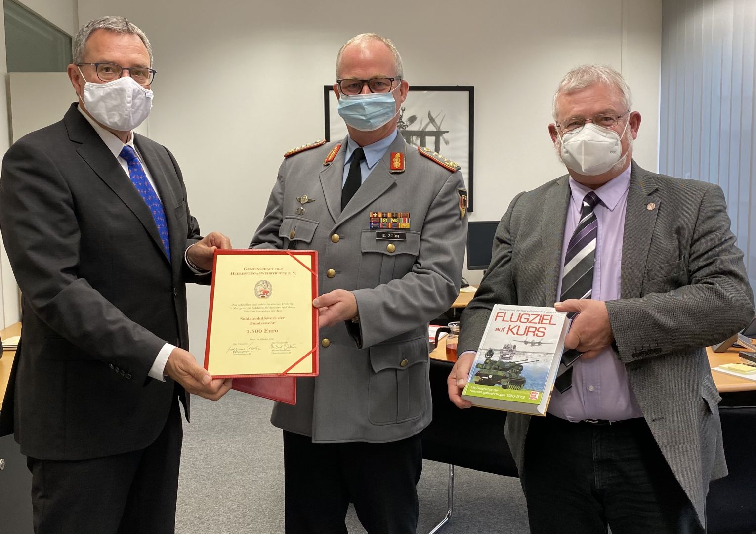 Die Spende wurde am 16. Oktober 2020 dem Generalinspekteur der Bundeswehr, Herrn General Eberhard Zorn, in seiner Eigenschaft als Vorsitzender des Soldatenhilfswerkes in Bonn vom Präsidenten und Vorsitzenden der Gemeinschaft überreicht. General Zorn bedankte sich für die von Generalmajor a. D. Wolfgang Köpke überreichte großzügige Spende und wies auf die besondere Bedeutung des Soldatenhilfswerks hin. Besonders erfreut war General Zorn darüber, weil im Jahr 2020 wegen der Corona-Situation viele Veranstaltungen, die oft Voraussetzungen für Spenden sind, ausgefallen und damit viele Spenden ausgeblieben sind. Insofern haben wir damit die durch Corona entstandene Lücke bei der Unterstützung unverschuldet in Not geratener Soldaten verringert.