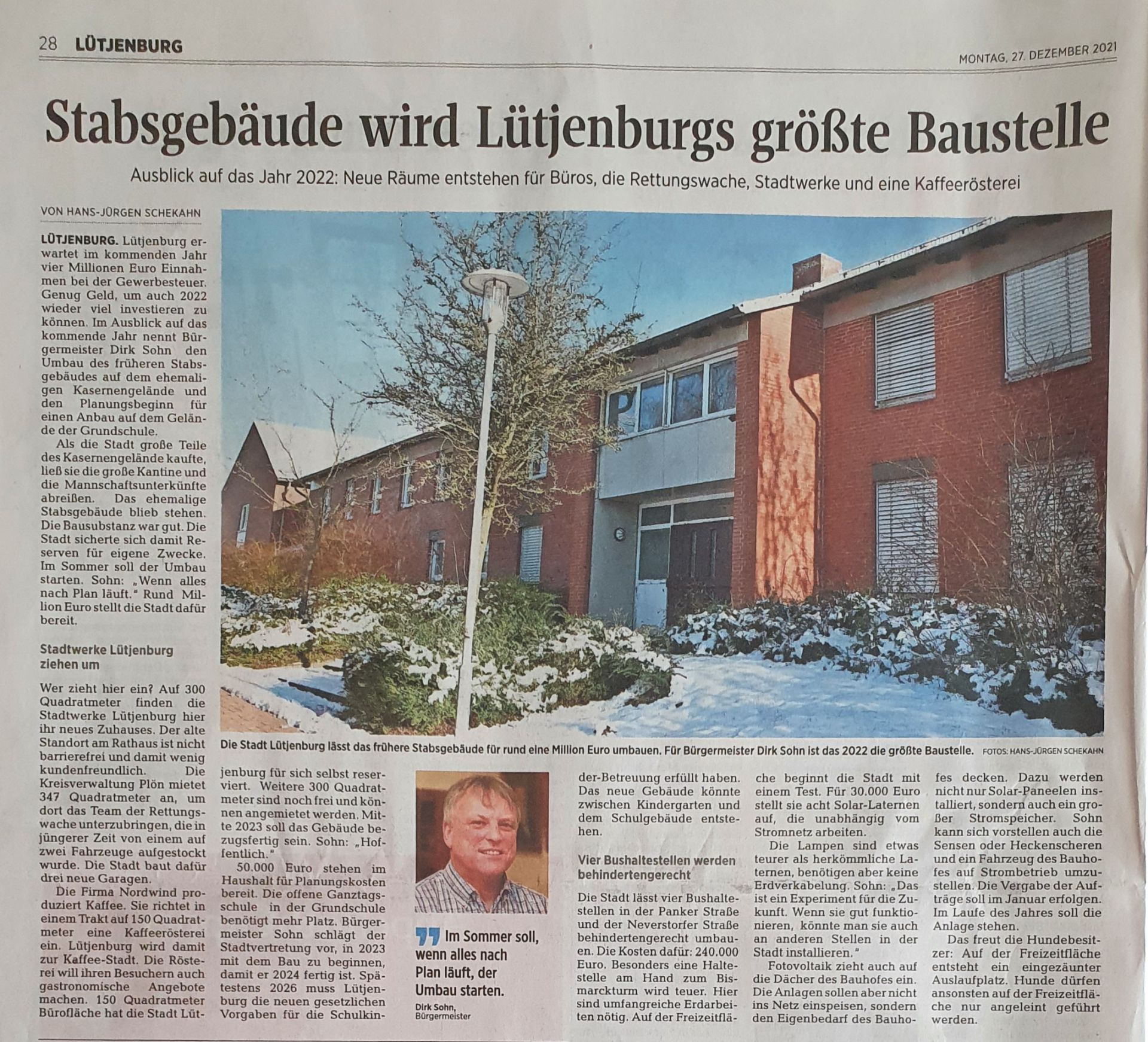 Die Konversion der ehemaligen Schill-Kaserne in Lütjenburg schreitet voran. Ein Pressebericht vom 27.12.2021 schildert die aktuelle Entwicklung. Mehr >>